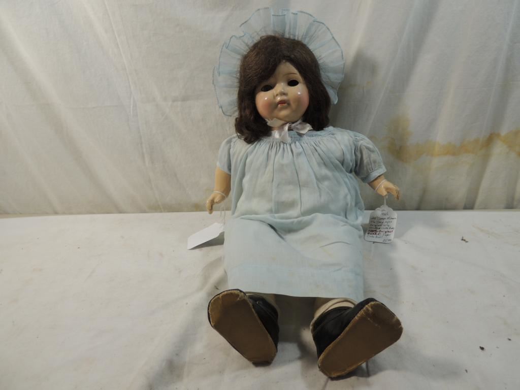 TIN SLEEP EYES ORIGINAL WIG STUFFED CLOTH BODY, 100% ORIGINAL OUTFIT SUPER CUTE DOLL AS SHOWN SEE PHOTO FOR MORE DETIALS