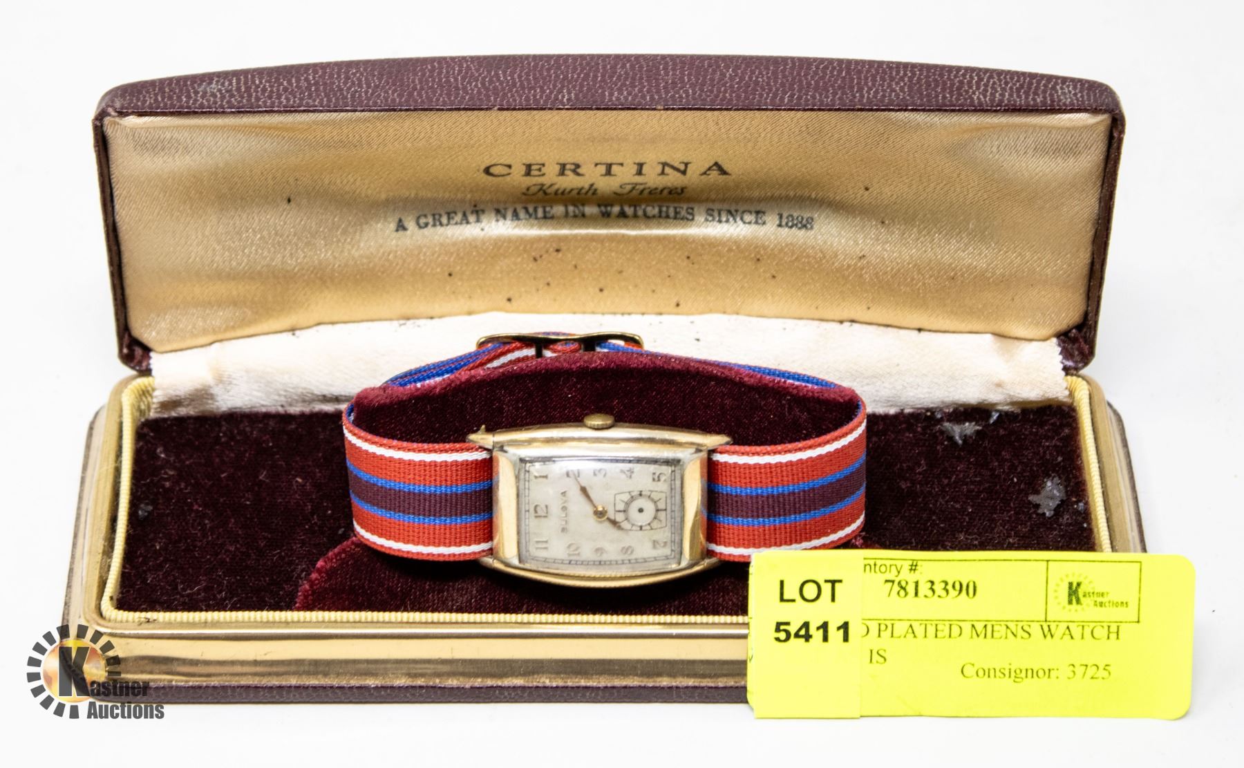 1930S GOLD PLATED MENS WATCH WITH CASE AS IS