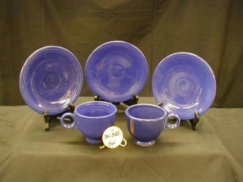 1930'S HOMER LAUGHLIN FIESTA COBALT BLUE INCLUDES (3) 6in BREAD PLATE UNMARKED (1 W/ BACK FLAKE, 1 W/MFG. FLAW), (2) UNMARKED TEA CUPS, 5 PC