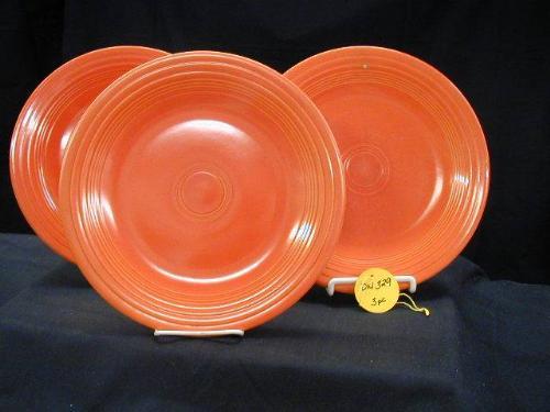 1930'S HOMER LAUGHLIN FIESTA RED INCLUDES (3) 10inPLATES UNMARKED (1 W/GLAZE POP) 3 PC