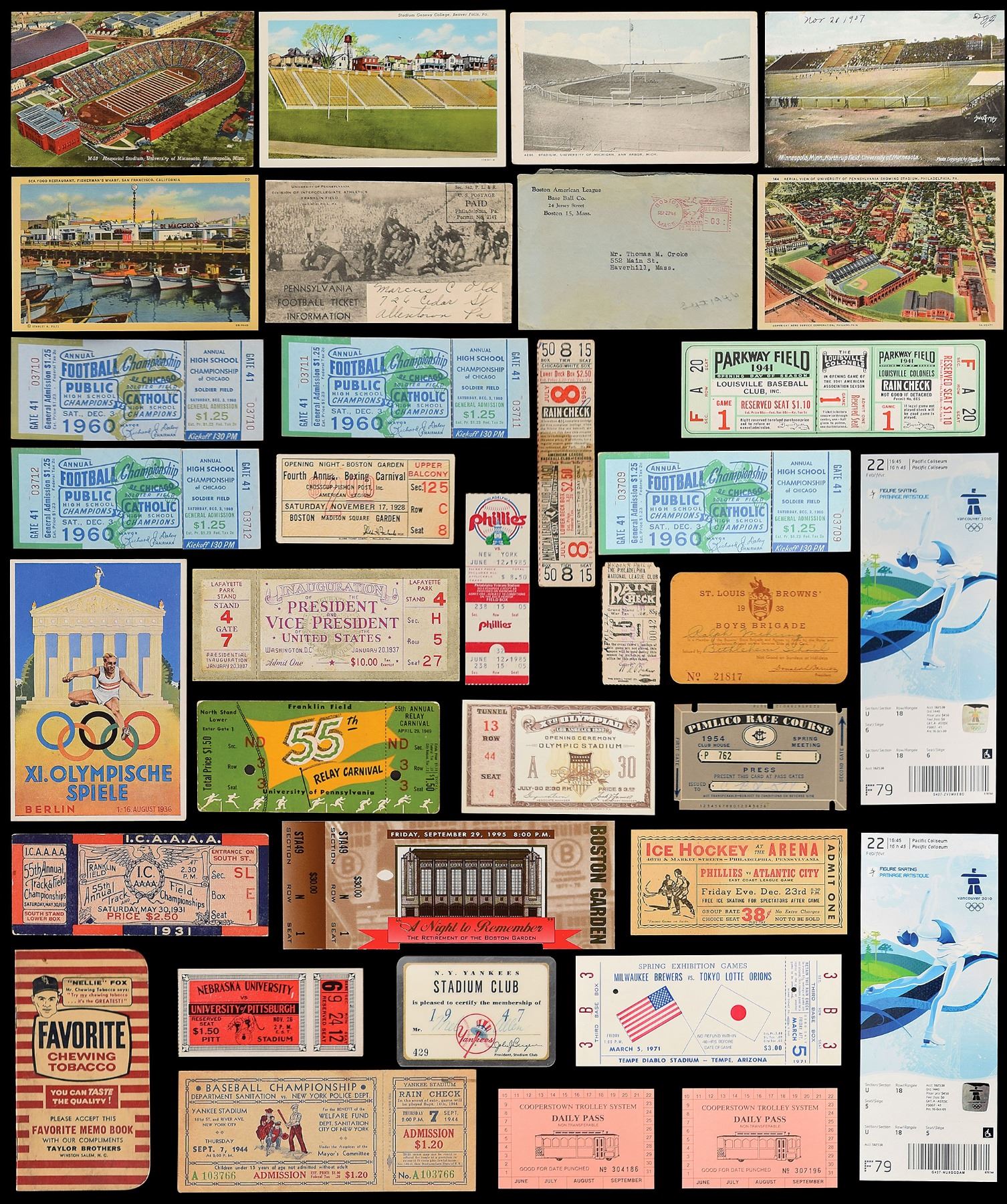 Others: 1) 1928 Boxing carnival at Boston Garden (VG/EX). 2) 1931 Nebraska at Pittsburgh CFB (EX). 3) 1931 Track and Field Championships, Franklin Field, PA (EX). 4) 1930s Ice Hockey at the Arena Full Ticket (EX/MT). 5) 1937 U.S. Presidential Inauguration Full Ticket - (VG/EX, F.D.R.). 6) 1949 Relay carnival, Franklin Field, PA (VG/EX). 7) 1960 Chicago Public vs. Catholic FB Championship Full Tickets (4, some looseness to perforation). 8) 1995 "A Night to Remember" Boston Garden Retirement Full Ticket (EX).