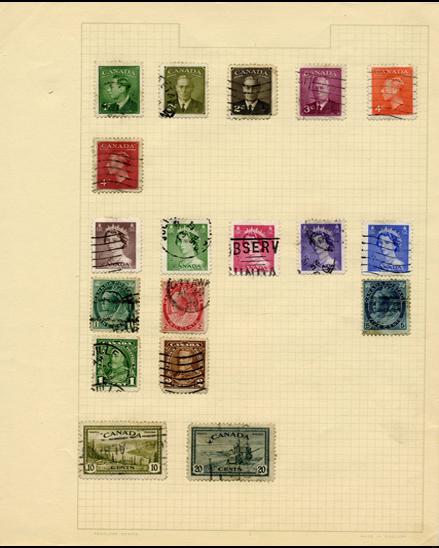 1930s/50s Canada Hand Made Stamp Collection Album Page 18 Pieces (STM-0292)