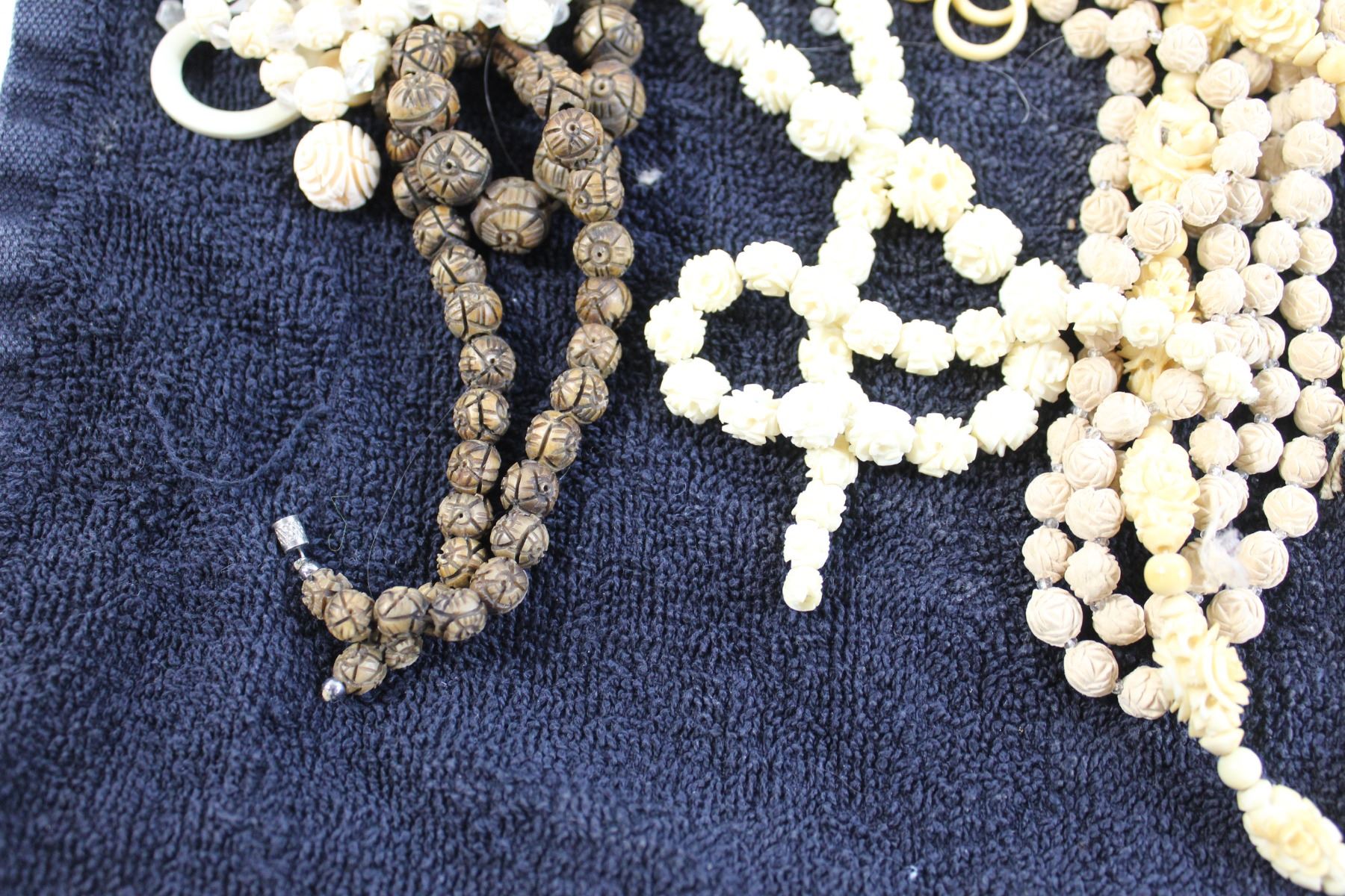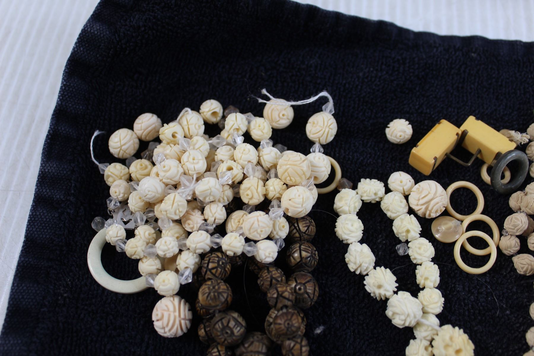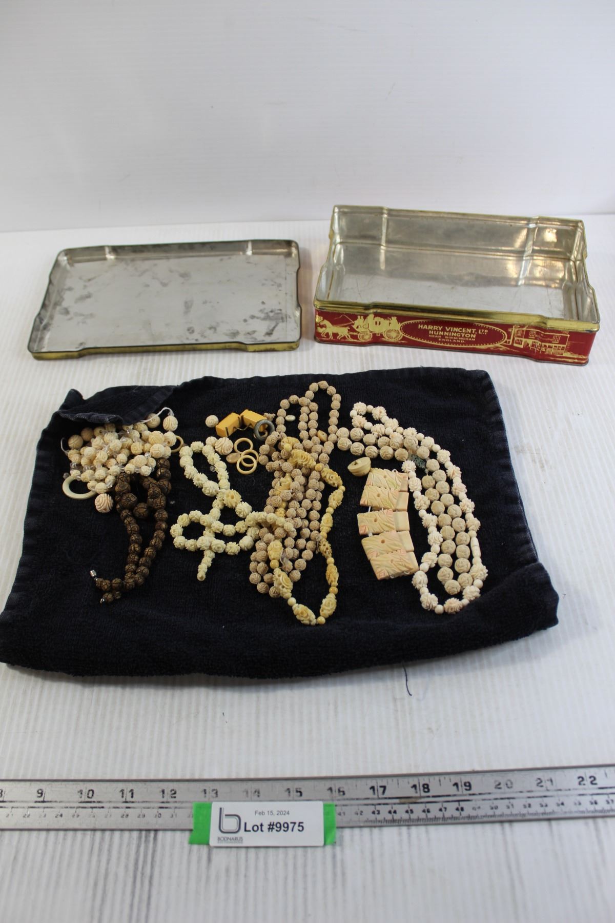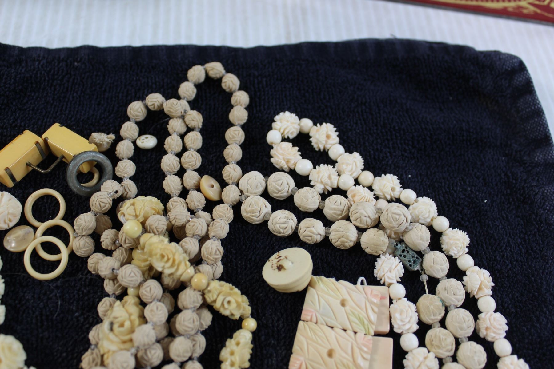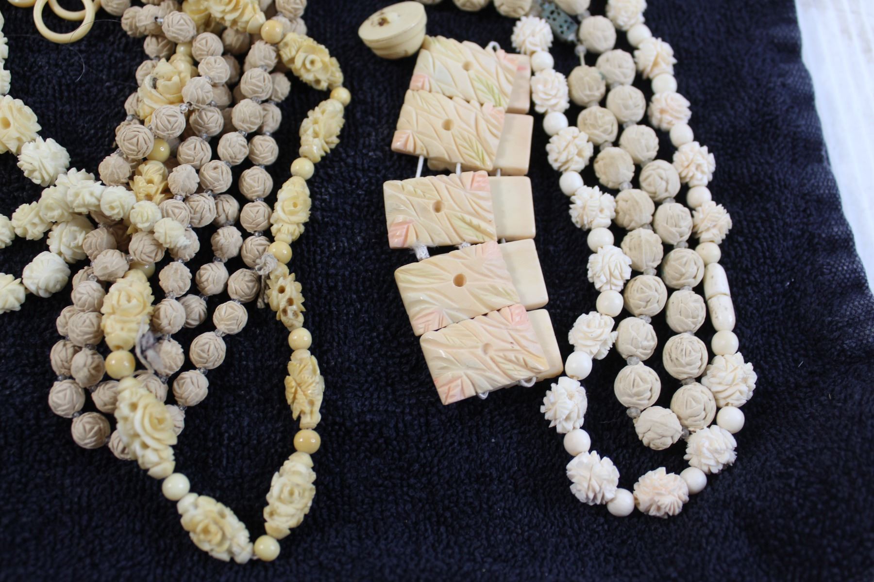 1930s Antique Jewelry - Celluloid and Bone, Carved Neck Laces, Bakelite - Extra Beads for Designer - Vintage Tin