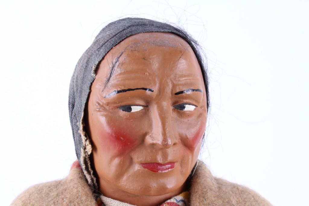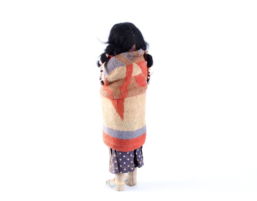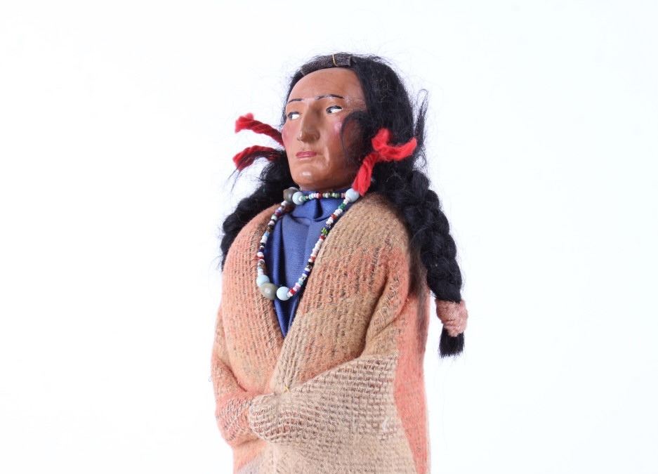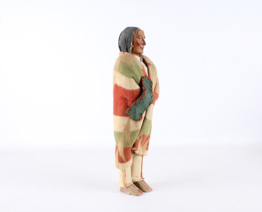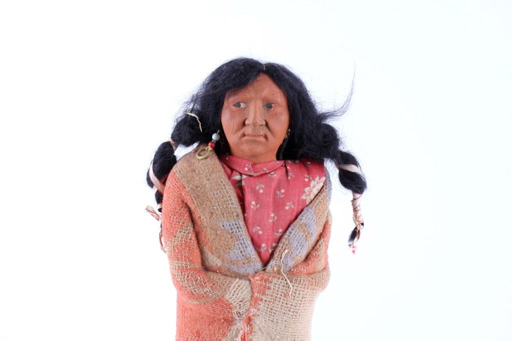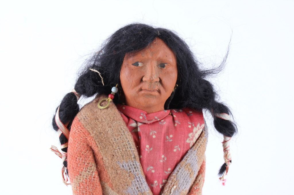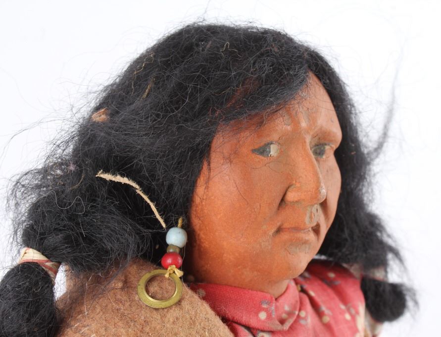 For your consideration in this lot is an early Native American "Skookum (Bully Good) Indian" doll collection of three. These dolls were mainly produced from 1914 until 1962, these particular Skookum Dolls are circa 1930's. The two taller Native American dolls hav a paper trademark sticker stating; "Trade Mark Registered - Patented - Skookum (Bully Good) Indian - U.S.A.". The dolls are also adorned with a beautiful woolen blanket, and traditional style accent features inlcuding hair braids, jewelery, and carrying pouch. The dolls are in overall good condition. The two taller pieces measure approximately 16" tall,and the shorter doll measures 12" tall.