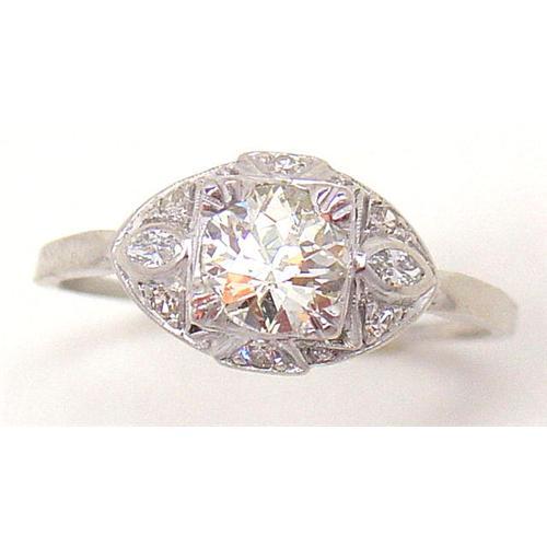 <table width="100%" border="0" cellspacing="0" cellpadding="4"><tr><td><em> </em></td></tr><tr> <td width="100%"> The approximately 0.75 carat round old mine cut diamond set in a beautiful hand chased filigre platinum mounting.It is flanked by 2 marquise shaped full cut diamonds and 6 round single cut diamonds. Total weight of smaller diamonds is approximately 0.20 carats. Center Diamond G-H color and SI3 clarity. Accompanied with a EGF certificate. Fits a finger size 7.75 Can be resized. </td></tr><tr> <td> </td></tr><tr> <td>Reference #: 4314</td></tr><tr><td>Condition:excellent</td></tr><tr><td>Year:circa 1930</td></tr><tr><td>Country:USA</td></tr><tr><td>Title:1930s Diamond Filigre Engagement Ring</td></tr><tr><td>Materials:Platinum and diamond</td></tr><tr><td>Location:New York, NY USA</td></tr></table>