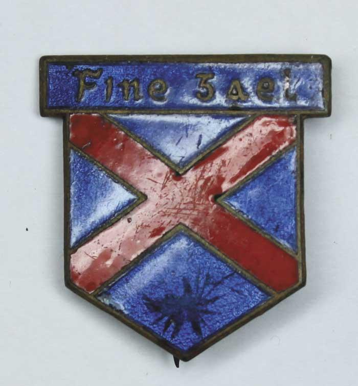 Rare example of a Fine Gael lapel badge from the early stages of the party's history. With red St. Patrick's cross on a blue shield and the words Fine Gael written above