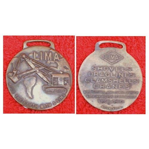 This watch fob was made by the Green Duck Co. and was an advertising give-away for Lima, Ohio Shovels, Draglines, Clamshells and Cranes. All this is embossed on the front and back. This is in very good condition with really nice detail.