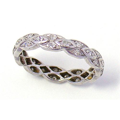 Vintage platinum and diamond band with an exquisite motif. It has 33 round good quality single cut diamonds in marquise shape setting. Totaling approximately .50ct. It fits a finger size 7. Dating from the 1930's, this is an original and desirable vintage ring.