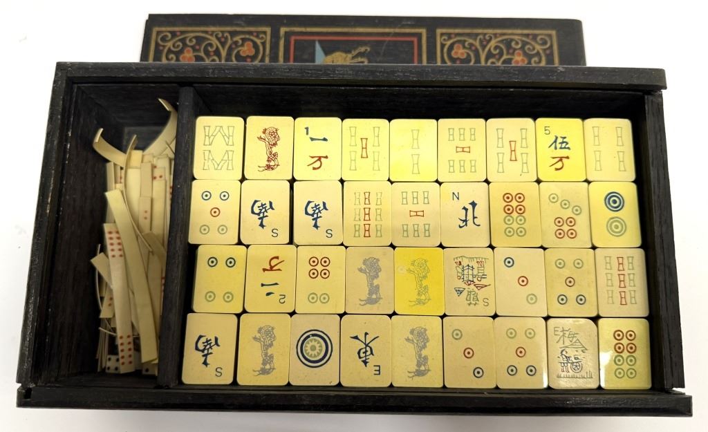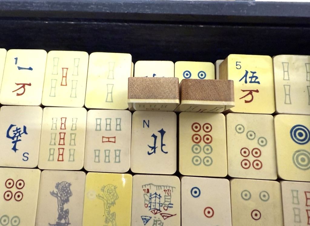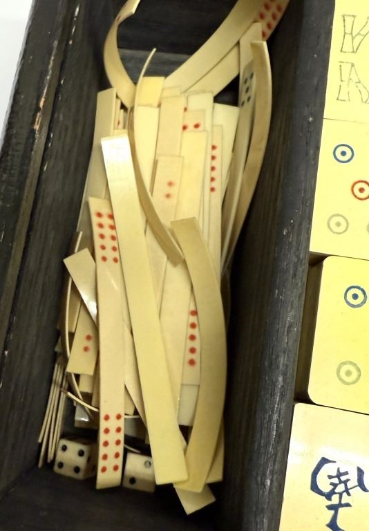 Item/Description: 1930s Mahjong set by Pung T. Chow made from bamboo and ox bone.
