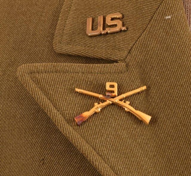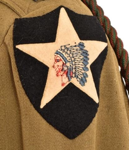 U.S. Army Tunic for a Major, 1930's, 2nd Infantry Division, 9th Infantry Regiment. Ribbon bar has Mexican Service, Occupation in Germany after WWI, WWI Victory Medal with 3 battle stars, WWI Croix de Guerre from French during WWI.