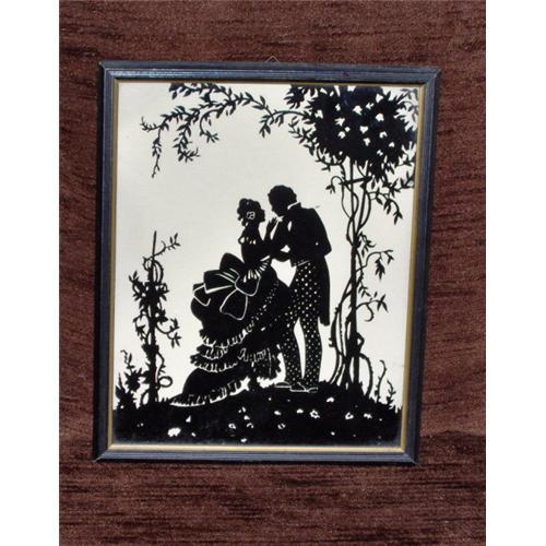This 1930s vintage reverse painted silhouette picture represents a venerated art form--the silhouette.</em></td>