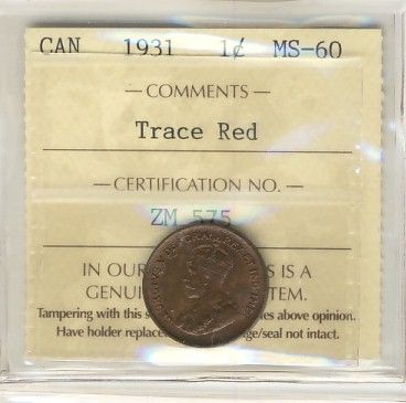 1931 1¢ ICCS MS60 Trace Red.
