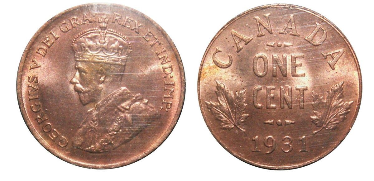 1931 1¢ ICCS MS65 Red. A gorgeous Premium Gem, with deep orange colours at the rims and a bold strike on both sides. The nicest example ever seen by TCNC. Tied for finest.