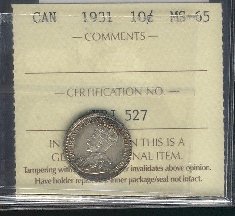 1931 10¢ ICCS MS65. Attractive lustrous issue.