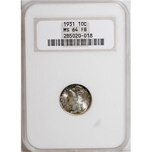 <B>1931 10C MS64 Full Bands NGC.</B></I> NGC Census: (37/64). PCGS Population (130/159). Mintage: 3,150,000. Numismedia Wsl. Price for NGC/PCGS coin in MS64: $158. (#4983)<BR><BR><B>Coin Engraver:</B> Adolph A. Weinman<BR><BR><b>Shipping:</b> Coins & Currency (<a target="_blank" href="http://www.heritageauctions.com/common/shipping.php">view shipping information</a>\)