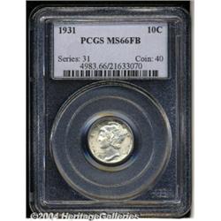 <B>1931<10C> MS66 Full Bands PCGS.</B></I> Fully struck with satiny, matte-like surfaces that are mostly chalk-white, on both obverse and reverse, virtually pristine, and display small amounts of speckled charcoal-russet patina on each side of the coin, mainly near the borders. Population: 46 in 66 Full Bands, 7 finer (7/04). <BR><BR><B>Important notice:</B> Heritage usually auctions material at the rate of 200-250 lots per hour. On some occasions eBay Live bid software or the Internet may not be able to keep up with the pace of the auction. We recommend placing a realistic absentee bid now as insurance to avoid disappointment. Occasionally the auctioneer may eliminate or reject an eBay Live bid, and the auctioneer may also reopen a lot after the close of the eBay live bidding (usually because we missed an audience bid), and may reject your bid even if it shows you as the winning bidder. By bidding via eBay Live, you agree that Heritage may award the lot to another bidder at its sole discretion under the circumstances described above or any other reasonable circumstances. Since eBay bids are not shown to us until we open the lot on the floor, we treat those bids just like floor bids. In most cases the floor responds before the eBay bid is presented to us, due to Internet lag time, so for consistency we have made it a policy that floor bids are always considered first over tie eBay live bids. Also please note that all Heritage lots purchased through eBay Live carry a 20% Buyer's Premium. Please make sure you read the Terms and Conditions before you bid. </span></font></tr></table></td></tr></table>