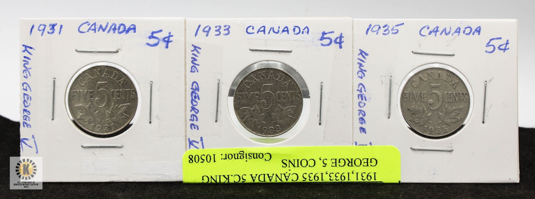 1931,1933,1935 CANADA 5C.KING GEORGE 5, COINS