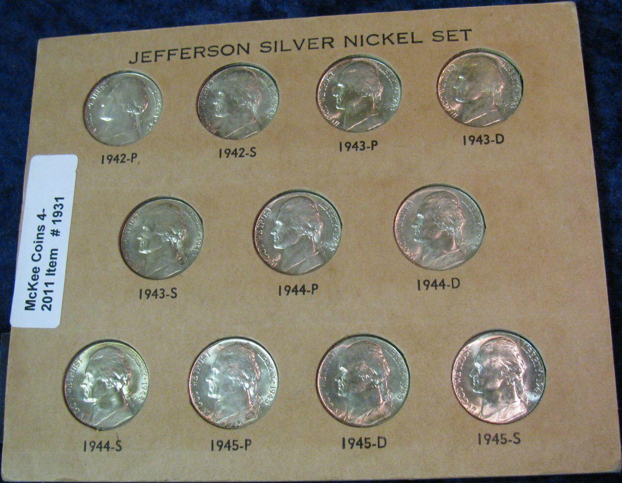 1931. 1942-45 World War II Nickel Set. Brilliant Unc. (11 pcs.).