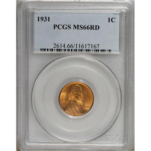 <B>1931 1C MS66 Red PCGS.</B></I> PCGS Population (238/11). NGC Census: (91/11). Mintage: 19,396,000. Numismedia Wsl. Price for NGC/PCGS coin in MS66: $590. (#2614)<BR><BR><b>Shipping:</b> Coins & Currency (<a target="_blank" href="http://www.heritageauctions.com/common/shipping.php">view shipping information</a>)