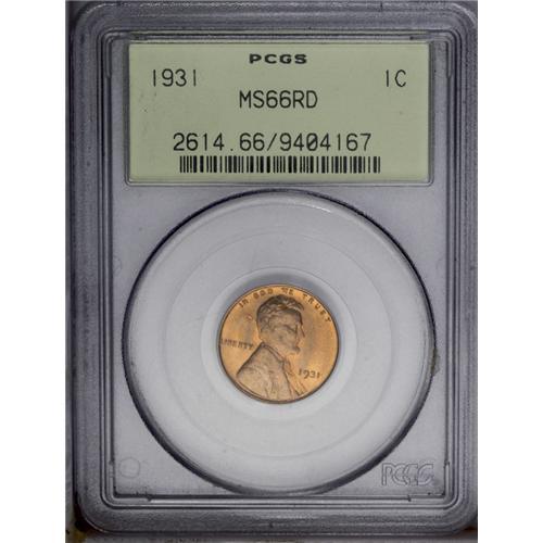 <B>1931<1C> MS66 Red PCGS.</B></I> Sharply defined with full mint red color. An area of deep crimson color is noted at the lower right portion of the reverse.<BR><I>From The Kendall Marie #4 All-Time Finest PCGS Registry of Lincoln Cents with Varieties, Circulation Strikes, 1909-1958.</B></I> <BR><BR><B>Important notice:</B> Heritage usually auctions material at the rate of 200-250 lots per hour. On some occasions eBay Live bid software or the Internet may not be able to keep up with the pace of the auction. We recommend placing a realistic absentee bid now as insurance to avoid disappointment. Occasionally the auctioneer may eliminate or reject an eBay Live bid, and the auctioneer may also reopen a lot after the close of the eBay live bidding (usually because we missed an audience bid), and may reject your bid even if it shows you as the winning bidder. By bidding via eBay Live, you agree that Heritage may award the lot to another bidder at its sole discretion under the circumstances described above or any other reasonable circumstances. Since eBay bids are not shown to us until we open the lot on the floor, we treat those bids just like floor bids. In most cases the floor responds before the eBay bid is presented to us, due to Internet lag time, so for consistency we have made it a policy that floor bids are always considered first over tie eBay live bids. Also please note that all Heritage lots purchased through eBay Live carry a 20% Buyer's Premium. Please make sure you read the Terms and Conditions before you bid. This lot is being auctioned in conjunction with a live floor auction by Heritage Galleries & Auctioneers. All final auction and invoice information will be supplied by Heritage Galleries & Auctioneers, and all other information should be considered preliminary. Lot:530 <BR><BR><B>Winning Notification and Billing:</B> After the FINAL session in this auction is complete, Heritage will send e-mail and snail mail invoices. This process normally takes several days. All final auction and invoice information will be supplied by Heritage Galleries & Auctioneers, and all other information should be considered preliminary. <BR><BR>This auction will be conducted on a live auction floor and over the Internet through eBay Live. If you choose to place an absentee bid, please take a moment to <font color='#0000ff'><u><a href='http://pages.ebay.com/liveauctions/help/before/laabsentee.html'>learn how eBay Live absentee bidding works</a></u></font><font color='#000000'>