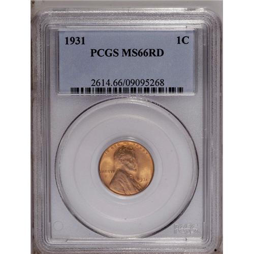 <B>1931<1C> MS66 Red PCGS.</B></I> Sharply struck and highly lustrous with the bright, frosty appearance of a newly- minted coin. Rich orange-red coloration adorns both sides, and there are several small fire-red splashes on the reverse. Exquisitely preserved and virtually mark-free.