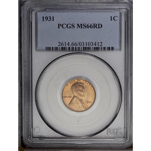 <B>1931<1C> MS66 Red PCGS.</B></I> Well struck with fiery red-orange color, blazing luster, and expertly preserved surfaces that seem nearly pristine. <BR><BR><B>Important notice:</B> Heritage usually auctions material at the rate of 200-250 lots per hour. On some occasions eBay Live bid software or the Internet may not be able to keep up with the pace of the auction. We recommend placing a realistic absentee bid now as insurance to avoid disappointment. Occasionally the auctioneer may eliminate or reject an eBay Live bid, and the auctioneer may also reopen a lot after the close of the eBay live bidding (usually because we missed an audience bid), and may reject your bid even if it shows you as the winning bidder. By bidding via eBay Live, you agree that Heritage may award the lot to another bidder at its sole discretion under the circumstances described above or any other reasonable circumstances. Since eBay bids are not shown to us until we open the lot on the floor, we treat those bids just like floor bids. In most cases the floor responds before the eBay bid is presented to us, due to Internet lag time, so for consistency we have made it a policy that floor bids are always considered first over tie eBay live bids. Also please note that all Heritage lots purchased through eBay Live carry a 20% Buyer's Premium. Please make sure you read the Terms and Conditions before you bid. This lot is being auctioned in conjunction with a live floor auction by Heritage Galleries & Auctioneers. All final auction and invoice information will be supplied by Heritage Galleries & Auctioneers, and all other information should be considered preliminary. Lot:657 <BR><BR><B>Winning Notification and Billing:</B> After the FINAL session in this auction is complete, Heritage will send e-mail and snail mail invoices. This process normally takes several days. All final auction and invoice information will be supplied by Heritage Galleries & Auctioneers, and all other information should be considered preliminary. <BR><BR>This auction will be conducted on a live auction floor and over the Internet through eBay Live. If you choose to place an absentee bid, please take a moment to <font color='#0000ff'><u><a href='http://pages.ebay.com/liveauctions/help/before/laabsentee.html'>learn how eBay Live absentee bidding works</a></u></font><font color='#000000'>