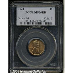<B>1931<1C> MS66 Red PCGS.</B></I> Sharply defined with full mint red color. Just a few small carbon flecks are noted on each side that limit the already high grade. <BR><BR><B>Important notice:</B> Heritage usually auctions material at the rate of 200-250 lots per hour. On some occasions eBay Live bid software or the Internet may not be able to keep up with the pace of the auction. We recommend placing a realistic absentee bid now as insurance to avoid disappointment. Occasionally the auctioneer may eliminate or reject an eBay Live bid, and the auctioneer may also reopen a lot after the close of the eBay live bidding (usually because we missed an audience bid), and may reject your bid even if it shows you as the winning bidder. By bidding via eBay Live, you agree that Heritage may award the lot to another bidder at its sole discretion under the circumstances described above or any other reasonable circumstances. Since eBay bids are not shown to us until we open the lot on the floor, we treat those bids just like floor bids. In most cases the floor responds before the eBay bid is presented to us, due to Internet lag time, so for consistency we have made it a policy that floor bids are always considered first over tie eBay live bids. Also please note that all Heritage lots purchased through eBay Live carry a 20% Buyer's Premium. Please make sure you read the Terms and Conditions before you bid. </span></font></tr></table></td></tr></table>