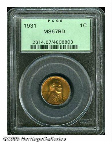 <B>1931<1C> MS67 Red PCGS.</B></I> A wonderfully preserved Depression Era Cent that features scintillating luster and an enticing blend of golden and reddish-orange color. The coin's Superb technical merits are, if anything, exceeded by it outstanding "curb appeal." Population: 7 in 67, 0 finer (6/05).<BR><I>From The William Bickel Collection, Part One.</B></I>