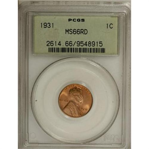 <B>1931 1C MS66 Red PCGS.</B></I> . PCGS Population (254/11). NGC Census: (94/11). Mintage: 19,396,000. Numismedia Wsl. Price for NGC/PCGS coin in MS66: $590. (#2614)<BR><BR><B>Coin Engraver:</B> Victor D. Brenner<BR><BR><b>Shipping:</b> Coins & Currency (<a target="_blank" href="http://www.heritageauctions.com/common/shipping.php">view shipping information</a>)