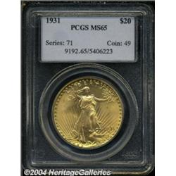 <table><tbody><tr><td><table> <TR><TD width="100%"><TABLE cellSpacing=1 cellPadding=3 width="100%" border=0><TBODY><TR><TD width="100%" bgColor=#79735c><FONT face=arial color=#ffffff size=3><B>Description</B> </FONT></TD></TR><TR><TD width="100%" bgColor=#ffffff><FONT face=arial size=2><B>1931 $20 MS65 PCGS.</B></I> Since virtually the entire extant population for 1931 falls into the Mint State grade level, it is obvious that this double eagle issue was never released for general circulation. Most of the 2,938,250 pieces originally struck were melted in the Mint and today the '31 is comparable in overall rarity to the highly respected 1932. This is a nearly impeccable example whose surfaces show smooth champagne-gold color and frosty texture. The reverse is free of the die crack that bisects the eagle's beak on most 1931 double eagles and there are no bothersome post-production distractions. A definite find for the high quality gold specialist. Population: 25 in 65, 5 finer (10/03).<BR><I>From a Magnificent Collection of Double Eagles.</B></I> </FONT></TD></TR></TBODY></TABLE></TD></TR></TBODY></TABLE><BR><A name=PricesRealized></A><TABLE cellSpacing=0 cellPadding=0 width="100%" bgColor=#000000 border=0><TBODY><TR><TD width="100%"><TABLE cellSpacing=1 cellPadding=3 width="100%" border=0><TBODY><TR><TD width="100%" bgColor=#79735c><A name=PR><FONT face=arial color=#ffffff size=3><B>Previous Prices from Heritage Auctions</B> </FONT></A></TD></TR><TR><TD bgColor=#f6f6ed><TABLE cellSpacing=0 cellPadding=0 width="100%" border=1><TBODY><TR><TD align=middle width="33%"><B>Date</B></TD><TD align=middle width="33%"><B>Service</B></TD><TD align=middle width="33%"><B>Price</B></TD></TR><TR bgColor=whitesmoke><TD width="33%"><B>01/07/2004</B></TD><TD width="33%">NGC</TD><TD width="33%">$49,450.00</TD></TR><TR bgColor=whitesmoke><TD width="33%"><B>05/05/2000</B></TD><TD width="33%">PCGS</TD><TD width="33%">$30,475.00</TD></TR><TR bgColor=whitesmoke><TD width="33%"><B>01/08/1999</B></TD><TD width="33%">PCGS</TD><TD width="33%">$41,630.00</TD></TR><TR bgColor=whitesmoke><TD width="33%"><B>02/16/2000</B></TD><TD width="33%">PCGS</TD><TD width="33%">$31,625.00</TD></TR><TR bgColor=whitesmoke><TD width="33%"><B>01/01/1990</B></TD><TD width="33%">PCGS</TD><TD width="33%">$77,000.00</TD></TR><TR bgColor=whitesmoke><TD width="33%"><B>02/01/1999</B></TD><TD width="33%">PCGS</TD><TD width="33%">$44,850.00</TD></TR><TR bgColor=whitesmoke><TD width="33%"><B>05/01/1999</B></TD><TD width="33%">PCGS</TD><TD width="33%">$32,775.00</TD></TR><TR bgColor=whitesmoke><TD width="33%"><B>05/01/1990</B></TD><TD width="33%">NGC</TD><TD width="33%">$75,350.00</TD></TR><TR bgColor=whitesmoke><TD width="33%"><B>05/01/1996</B></TD><TD width="33%">NGC</TD><TD width="33%">$40,700.00</TD></TR></TBODY></TABLE></TD></TR><TR><TD bgColor=#ffffff><FONT face=arial size=1 ?>PLEASE NOTE: All prices realized reflect the final hammer price PLUS the buyer's premium in auctions that charge a buyer's premium. Each item has a notation at the top of the listing indicating whether that lot included a buyer's premium. Example: A item that sells with a final hammer price of $100 and a 20% buyer's premium will display with a price realized of $120. All information listed is intended to be as accurate as possible, but errors are possible. Please use this guide carefully and inform us of any inaccuracies. </FONT></TD></TR></TBODY></TABLE></TD></TR></TBODY></TABLE><BR><TABLE cellSpacing=0 cellPadding=0 width="100%" bgColor=#000000 border=0><TBODY><TR><TD width="100%"><TABLE cellSpacing=1 cellPadding=3 width="100%" border=0><TBODY><TR><TD width="100%" bgColor=#79735c colSpan=6><FONT face=arial color=#ffffff size=3><B>Price Guide*</B> </FONT></TD></TR><TR bgColor=#f6f6ed><TD align=middle><B>Grade</B> </TD><TD align=middle><B>Coin World<BR>(Trends)</B> </TD><TD align=middle><B>Numismedia<BR>Retail</B> </TD><TD align=middle><B>Numismedia<BR>Wholesale</B> </TD><TD align=middle><B>Coin<BR>Universe</B> </TD><TD align=middle><B>Heritage<BR>Value Index</B> </TD></TR><TR bgColor=#ffffff><TD align=middle>64</TD><TD align=right>$40,000.00</TD><TD align=right>---</TD><TD align=right>$24,725.00</TD><TD align=right>$35,000.00</TD><TD align=right>$25,600.00</TD></TR><TR style="FONT-WEIGHT: bold" bgColor=#cccfdd><TD align=middle>65</TD><TD align=right>$50,000.00</TD><TD align=right>---</TD><TD align=right>$33,750.00</TD><TD align=right>$57,500.00</TD><TD align=right>$37,683.33</TD></TR><TR bgColor=#ffffff><TD align=middle>66</TD><TD align=right>$75,000.00</TD><TD align=right>---</TD><TD align=right>$77,500.00</TD><TD align=right>---</TD><TD align=right>$52,500.00</TD></TR><TR bgColor=#ffffff><TD colSpan=6><FONT size=1>*All information listed is intended to be as accurate as possible, but errors are possible. No item may be returned or refused based on this information which is provided as a service to our customers. You should contact each pricing source directly to determine the accuracy of this information. </FONT></TD></TR></TBODY></TABLE></TD></TR></TBODY></TABLE><BR><TABLE cellSpacing=0 cellPadding=0 width="100%" bgColor=#000000 border=0><TBODY><TR><TD width="100%"><TABLE cellSpacing=1 cellPadding=3 width="100%" border=0><TBODY><TR><TD width="100%" bgColor=#79735c><FONT face=arial color=#ffffff size=3><B>Population Guide</B> </FONT></TD></TR><TR bgColor=#ffffff><TD align=middle><!-- Begin Output of Population Grid--><TABLE cellSpacing=0 cellPadding=0 width="100%" border=0><TBODY><TR><TD vAlign=center><TABLE cellSpacing=0 width="100%" border=1 cellsadding="3"><TBODY><TR><TD vAlign=center><TABLE cellSpacing=0 cellPadding=3 width="100%" border=1><TBODY><TR><TD vAlign=center align=middle bgColor=#f0f1e8 colSpan=2 <CENTER><FONT face=Arial size=2><B>PCGS Pop </B></FONT><CENTER></CENTER></TD><TD vAlign=center align=middle bgColor=#f0f1e8 colSpan=2><CENTER><FONT face=Arial size=2><B>NGC Pop</B></CENTER></FONT></TD></TR><TR><TD vAlign=center><FONT face=Arial size=2>(65)</FO