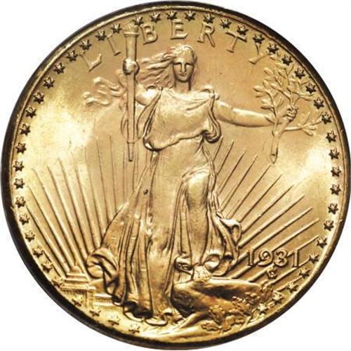 <B>1931 $20 MS65 PCGS.</B></I> The 1931 Saint-Gaudens double eagle, one of several challenging Great Depression-era double eagle issues, is a prime rarity despite a mintage that approaches 3 million coins. It has been recognized as an important issue nearly since the time it was released, or rather, not released. Few of those coins struck actually left the Mint. Most were stored in vaults and eventually melted after the gold recall a couple years later. Collectors quickly acquired the few examples that found their way out of the Mint. Nearly every known survivor grades at least MS60, and a grade of MS64 is typical. Only a few are known in higher grades, including three pieces in the Smithsonian Institution (one MS67 and two MS65), three examples formerly in the Philip Morse Collection (MS67, 66, and 65), and high grade coins once owned by Jeff Browning, Thaine Price, and the Norweb family.<BR> The exact number of survivors is not known, but is probably in the range of 50 to 60 coins, as estimated by David Akers in his reference on double eagle auction records. Dave Bowers suggested a higher total in his <I>Guide Book</B></I> to the series, between 80 and 120 Mint State examples, and another five to eight coins in lower grades. His estimates illustrate the rarity of circulated coins. <BR> Every author or numismatist has an opinion about the rarity of the 1931 double eagle. In the <I>Encyclopedia of U.S. Gold Coins</B></I>, Jeff Garrett and Ron Guth write: "As the depression in America deepened in the early 1930s, the Philadelphia Mint coined a substantial number of new double eagles during 1931. These sat around unwanted in Treasury or bank vaults, only to be gathered up a few years later and melted. Virtually the entire mintage was wiped out, leaving perhaps 200 to 300 surviving pieces."<BR> These various opinions lead to disagreement about the true rarity of the date. In <I>The Coinage of Augustus Saint-Gaudens</B></I>, James Halperin and the Heritage staff comment: "the 1931-P is probably the one with the least clearly-defined relative rarity ranking."<BR> The present piece is a lovely Gem with frosty yellow-gold luster and few blemishes or imperfections on either side. All of the design elements are boldly rendered, and the overall eye appeal is excellent. When seeking an example of the 1931 double eagle, patience and discipline are two of the collector's strongest allies, but equally important is recognizing the "right" coin and pursuing it. This example has the potential to satisfy the discerning numismatist's needs.<BR><BR><B>Coin Engraver:</B> Augustus Saint-Gaudens<BR><BR><b>Shipping:</b> Coins & Currency (<a target="_blank" href="http://www.heritageauctions.com/common/shipping.php">view shipping information</a>)