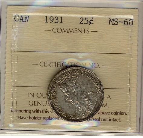 1931 25¢ ICCS MS60