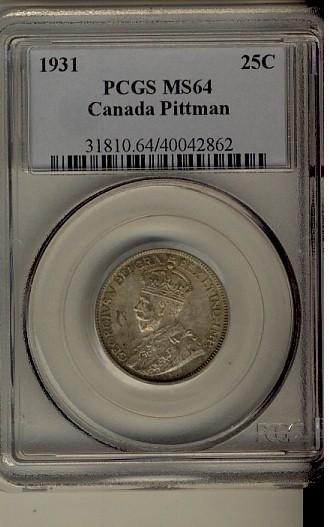 1931 25¢ PCGS MS64. Pittman example.