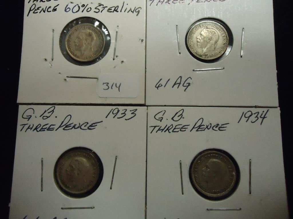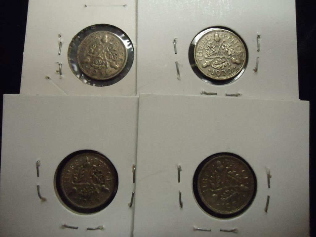 1931,32,33 & 1934 GREAT BRITAIN SILVER 3 PENCE