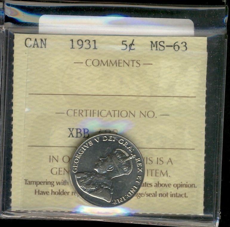 1931 5¢ ICCS MS63. Popular and tough issues to find for grade.