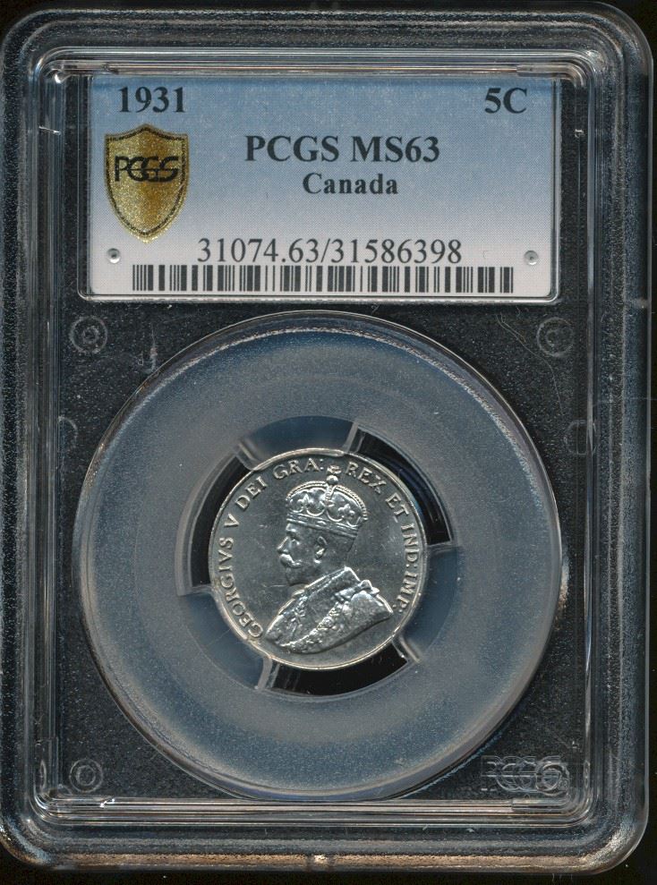 1931 5¢ PCGS MS63. Strong lustre. Scarce date.