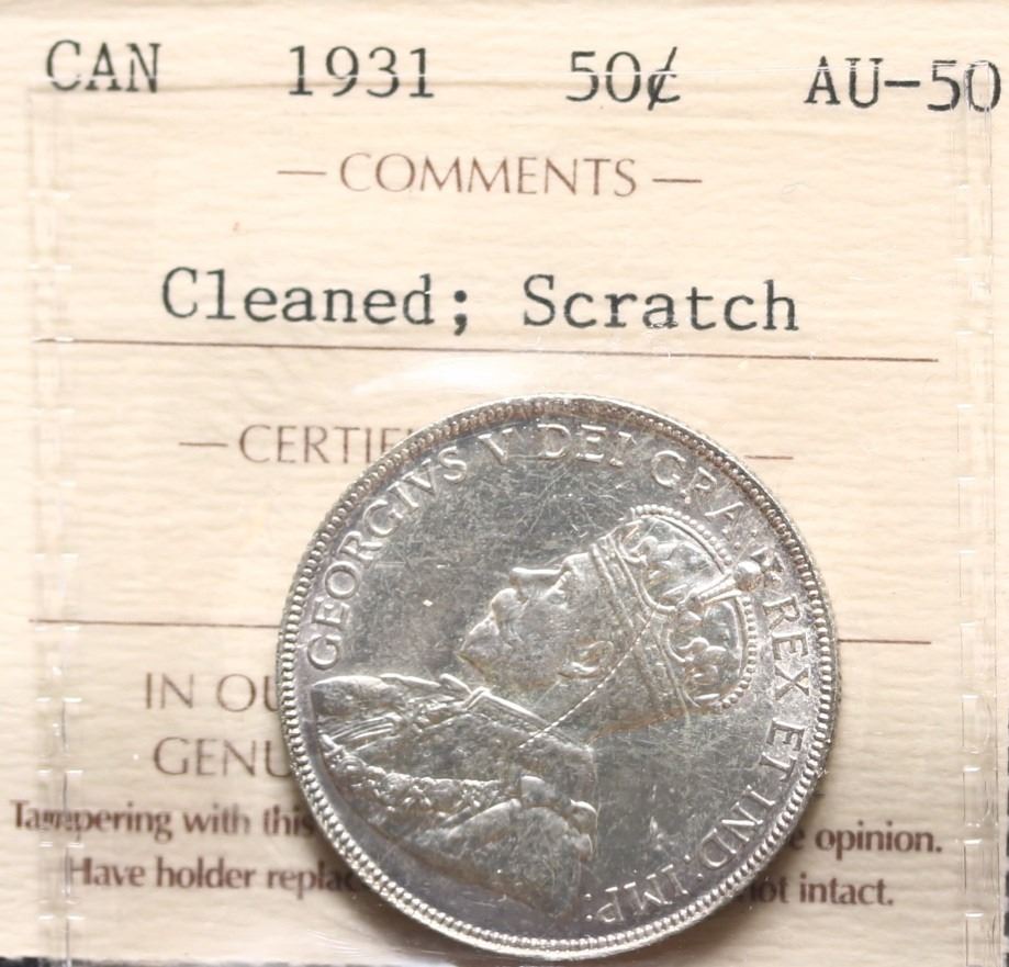 1931 50¢ ICCS About Uncirculated-50 Cleaned; Scratch.