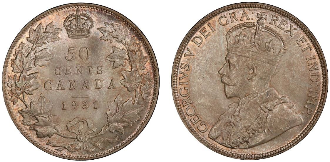1931 50¢ PCGS Gem Mint State-65+ The way this coin was maintained and the toning it acquired takes us back to the auction of the early 2000's, when this look would have multiple bidders regardless of grade. That is a Gem+ / Gem Mint State-65+, should add additional interest. PQ!
