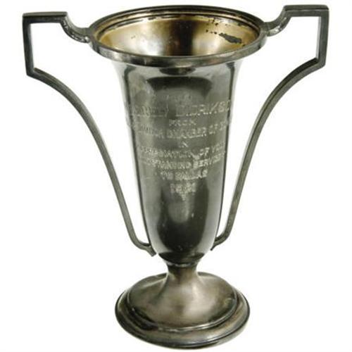 <B>1931 Babe Didrikson Presentational Loving Cup.</B></I> Just twenty years old when this trophy was presented to her, the future US Women's Open Champion and Olympic Gold Medalist was likely being thanked for her service as a ringer of sorts for the Employers Casualty Insurance Co. of Dallas basketball team, which earned the Amateur Athletic Union Championship this year with Babe at the helm. Also possible, though less likely, is that the prize bore some connection to her victory in the 1931 State Fair of Texas sewing competition. Regardless of the facts of the case, this marvelous silver cup stands as the earliest trophy we've ever encountered from the remarkable life of the century's greatest female athlete. Our consignor relates that it was purchased from the family of a caretaker at the Woodlands Country Club near Houston, Texas, which once housed the Texas Golf Hall of Fame. When the small museum folded, the caretaker was instructed to dispose of its contents, and wisely chose to salvage at least a portion for himself. The engraved text upon this simple nine-inch tall trophy reads, "To Mildred Didrikson from Dallas Junior Chamber of Commerce in Appreciation of Your Outstanding Service to Dallas, 1931." Only an expected degree of tarnishing and some mild surface wear is to be noted in terms of condition issues. A special, early artifact from this storied twentieth century athletic icon.<BR><BR><b>Shipping:</b> Miscellaneous Collectibles, Smal (<a target="_blank" href="http://www.heritageauctions.com/common/shipping.php">view shipping information</a>)