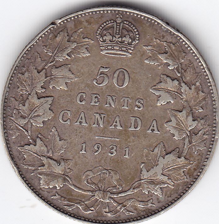 1931 Canadian Silver 50-Cent Half Dollar Coin - VF-20 Condition - Semi-Key Date