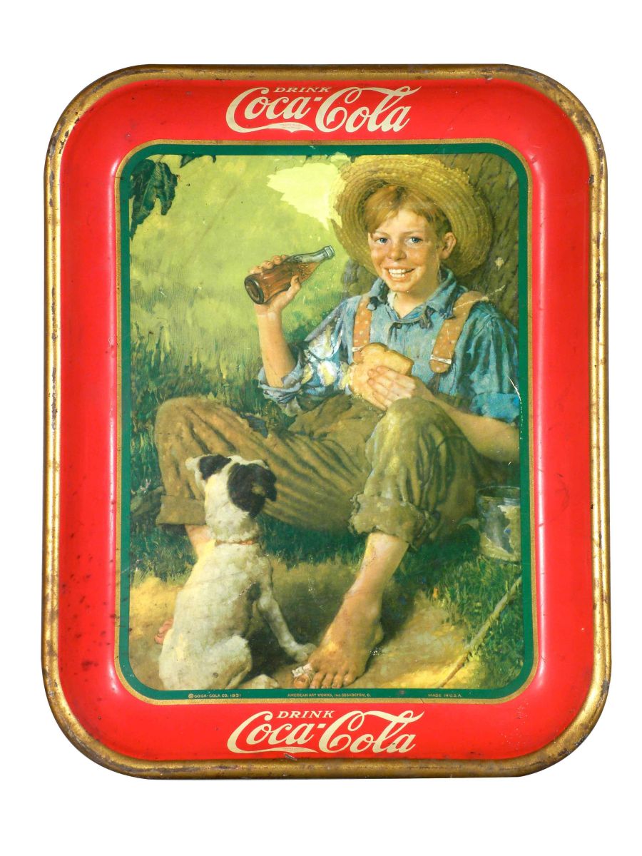 1931 Coca Cola Tin Serving Tray. Edge ware, scuffs and scratches otherwise fair to good condition. 10 1/2 X 13 1/4 inches.