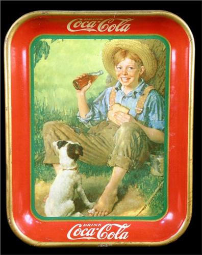 1931 "Coca-Cola" rectangular serving tray 10 x 13" "Gone Fishin' " by Norman Rockwell