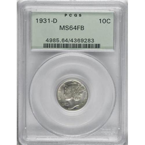 <B>1931-D 10C MS64 Full Bands PCGS.</B></I> PCGS Population (278/461). NGC Census: (75/173). Mintage: 1,260,000. Numismedia Wsl. Price for NGC/PCGS coin in MS64: $150. (#4985)<BR><BR><B>Coin Engraver:</B> Adolph A. Weinman<BR><BR><b>Shipping:</b> Coins & Currency (<a target="_blank" href="http://www.heritageauctions.com/common/shipping.php">view shipping information</a>)