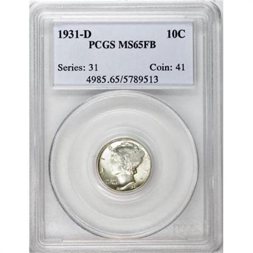 <B>1931-D 10C MS65 Full Bands PCGS.</B></I> PCGS Population (287/181). NGC Census: (120/55). Mintage: 1,260,000. Numismedia Wsl. Price for NGC/PCGS coin in MS65: $320. (#4985)<BR><BR><B>Coin Engraver:</B> Adolph A. Weinman<BR><BR><b>Shipping:</b> Coins & Currency (<a target="_blank" href="http://www.heritageauctions.com/common/shipping.php">view shipping information</a>)