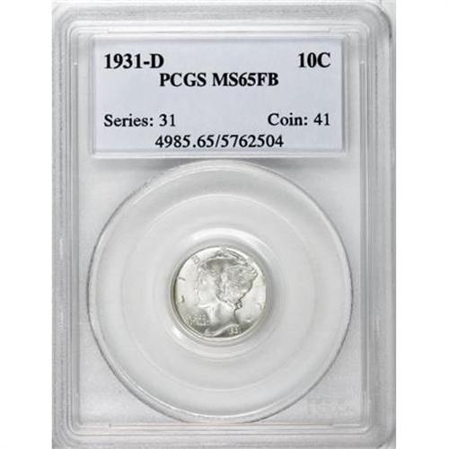 <B>1931-D 10C MS65 Full Bands PCGS.</B></I> PCGS Population (287/181). NGC Census: (120/55). Mintage: 1,260,000. Numismedia Wsl. Price for NGC/PCGS coin in MS65: $320. (#4985)<BR><BR><B>Coin Engraver:</B> Adolph A. Weinman<BR><BR><b>Shipping:</b> Coins & Currency (<a target="_blank" href="http://www.heritageauctions.com/common/shipping.php">view shipping information</a>)