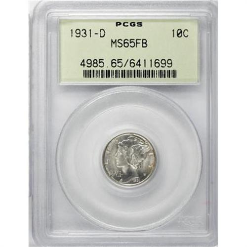 <B>1931-D 10C MS65 Full Bands PCGS.</B></I> . PCGS Population (287/183). NGC Census: (120/56). Mintage: 1,260,000. Numismedia Wsl. Price for NGC/PCGS coin in MS65: $320. (#4985)<BR><BR><B>Coin Engraver:</B> Adolph A. Weinman<BR><BR><b>Shipping:</b> Coins & Currency (<a target="_blank" href="http://www.heritageauctions.com/common/shipping.php">view shipping information</a>)