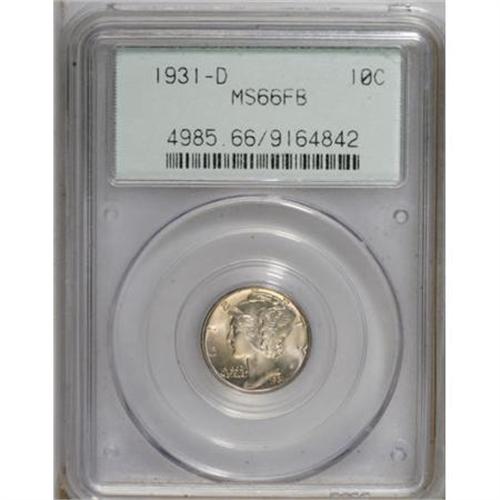 <B>1931-D 10C MS66 Full Bands PCGS.</B></I> PCGS Population (143/37). NGC Census: (45/10). Mintage: 1,260,000. Numismedia Wsl. Price for NGC/PCGS coin in MS66: $550. (#4985)<BR><BR><B>Coin Engraver:</B> Adolph A. Weinman<BR><BR><b>Shipping:</b> Coins & Currency (<a target="_blank" href="http://www.heritageauctions.com/common/shipping.php">view shipping information</a>)