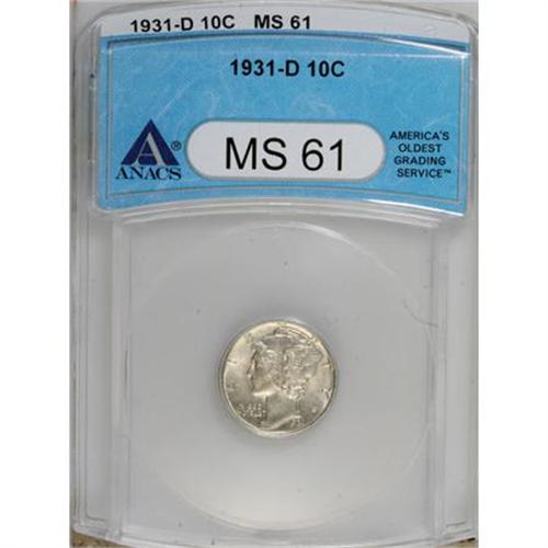 <B>1931-D 10C MS61 ANACS.</B></I> NGC Census: (1/131). PCGS Population (0/135). Mintage: 1,260,000. Numismedia Wsl. Price for NGC/PCGS coin in MS61: $77. (#4984)<BR><BR><B>Coin Engraver:</B> Adolph A. Weinman<BR><BR><b>Shipping:</b> Coins & Currency (<a target="_blank" href="http://www.heritageauctions.com/common/shipping.php">view shipping information</a>)