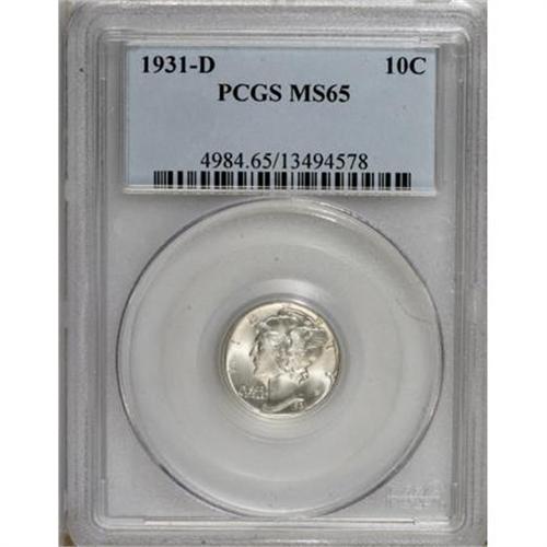 <B>1931-D 10C MS65 PCGS.</B></I> PCGS Population (42/25). NGC Census: (54/31). Mintage: 1,260,000. Numismedia Wsl. Price for NGC/PCGS coin in MS65: $200. (#4984)<BR><BR><B>Coin Engraver:</B> Adolph A. Weinman<BR><BR><b>Shipping:</b> Coins & Currency (<a target="_blank" href="http://www.heritageauctions.com/common/shipping.php">view shipping information</a>)