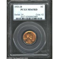 1931-D 1C MS65 Red PCGS. A flashy and well-struck cent with beautiful, rich orange surfaces that are